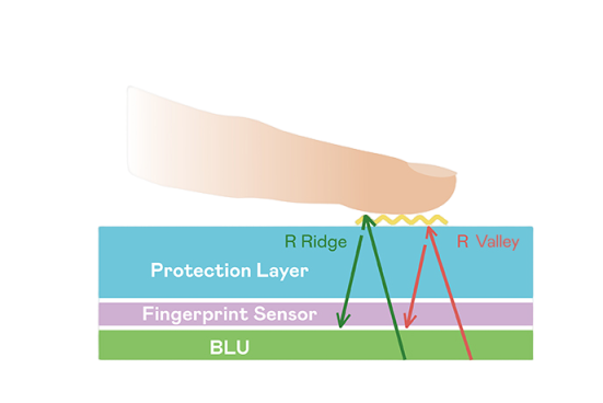 超高像素密度光学感测技术能精准判定手指反射的极微弱光讯号,即使细致指纹也可清晰辨识,并可透过手指脉搏造成的细微灰阶变化侦测心跳,让身分验证更精确。TFT 架构优化可降低讯号传输干扰,达到光感测器最佳讯杂比(讯号/杂讯的比例)。透过增强光讯号接收强度、优化感测器电路及导入特殊光学膜材料,提高感测器敏度。整合系统之指纹扫描装置可符合最高等级的FBI国际安全规范认证需求。